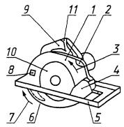 защитным кожухом 1-10 (см. рисунок 101); 11 - рычаг разблокирования фиксации защитного кожуха тянущегося типа Рисунок 103 - Дисковая пила с защитным кожухом
