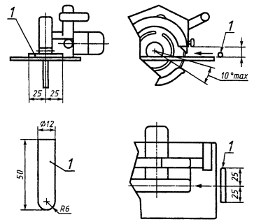 тянущегося типа 1-3; 5; 6; 8-10 (см. рисунок 101); 11 - рычаг разблокирования фиксации погружения; 12 - направление погружения пильного диска Рисунок 104 - Дисковая пила погружная 1 - рукоятка Рисунок 105 - Испытательный щуп а 1 - испытательный щуп b Рисунок 106 - Испытательный щуп b Рисунок 107 - Дисковая пила