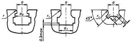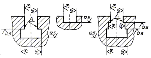 канавок для выхода шлифовального круга, фасок и радиусов закругления Т-образных