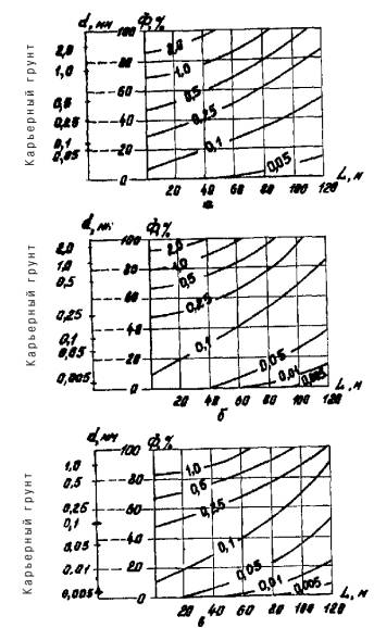 разреза и гранулометрического состава грунта. По содержанию фракций диаметром d < 0,1 мм карьерный грунт делят на