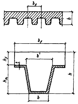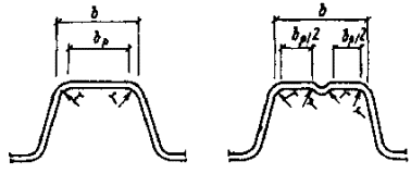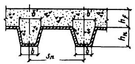 ширина ребра по верху таврового сечения плиты bi - ширина плоских участков сжатых полок, равная
