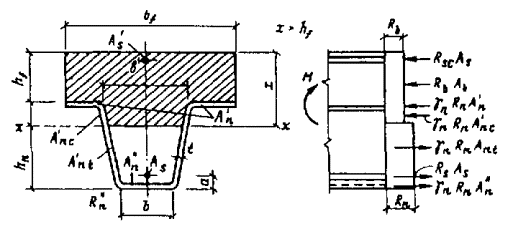 толщина листа стального профилированного настила х - высота сжатой зоны бетона yc - расстояние от узкой грани профилированного настила