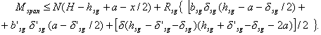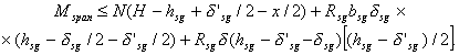по условию (58): Мspan≤N(H-hsg+a-x/2)+Rsg{bsgδsg(hsg-a-δ’sg/2)+ +b’sg(a-δ’sg/2)+[δ(hsg-δ’sg-δsg)(hsg+δ’sg-δsg-2a)]/2)}, где высота сжатой зоны бетона x=N/(Rfbb)=375,549/(0,978·200)=1,92