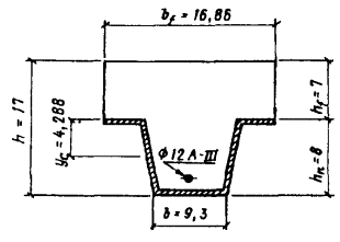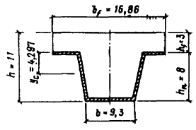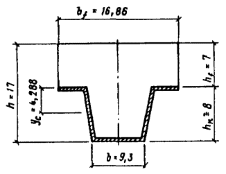 - площадь сечения плиты по ширине одного кофра настила, определяемая по формуле A’c=bfhf+0,5(b+b’)hn=16,86·7+0,5(9,3+11,86)8=202,66 см2. Таким образом Тb1=0,9·202,66·2=36,48 кН. Следовательно, меньшая из