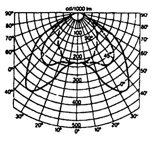удельной мощности для светильников прямого света с типовыми кривыми силы света.