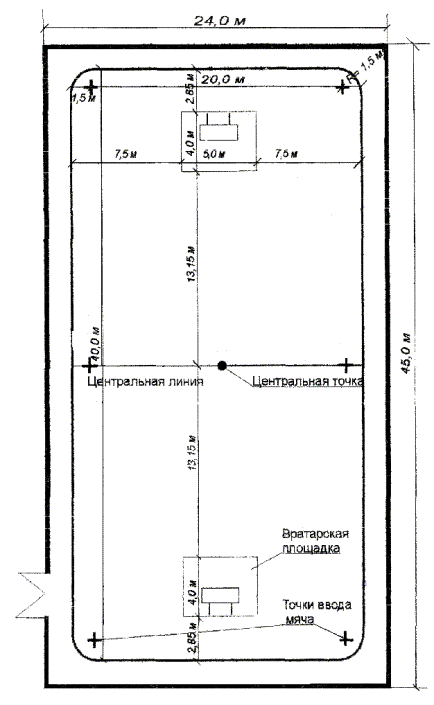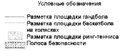 7. Схемы разметки площадок для гандбола, баскетбола на колясках, ринг-тенниса для