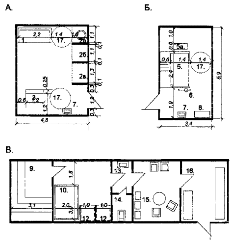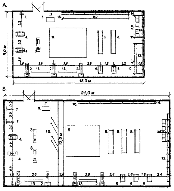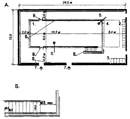 инвалидов-опорников. А. Зал 18´9 м. Б. Зал 21´12