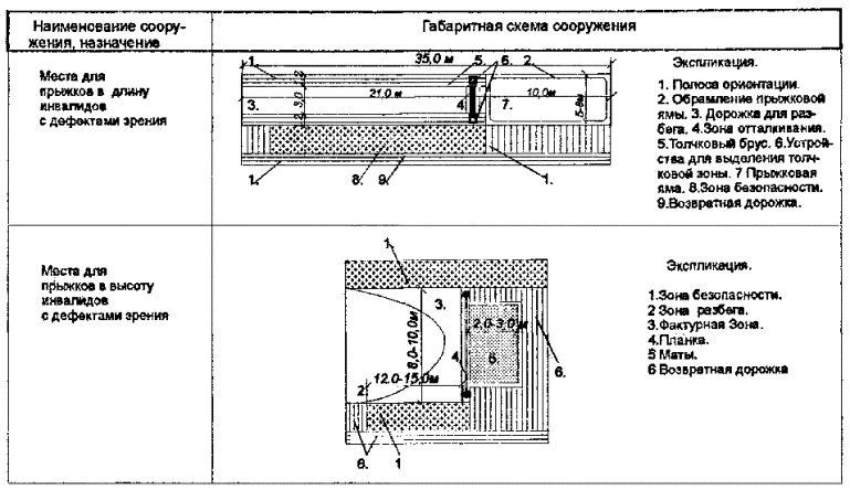 инвалидов различных групп. Места для прыжков инвалидов с дефектами зрения. Рис.