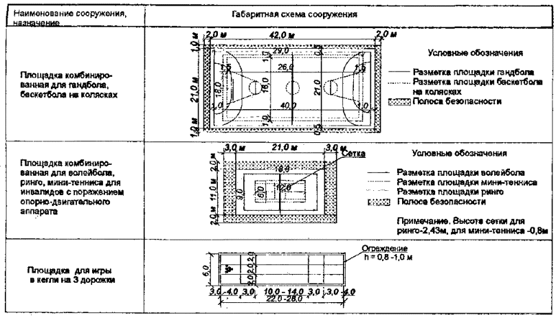 городок. 3. Открытые специализированные сооружения для инвалидов различных