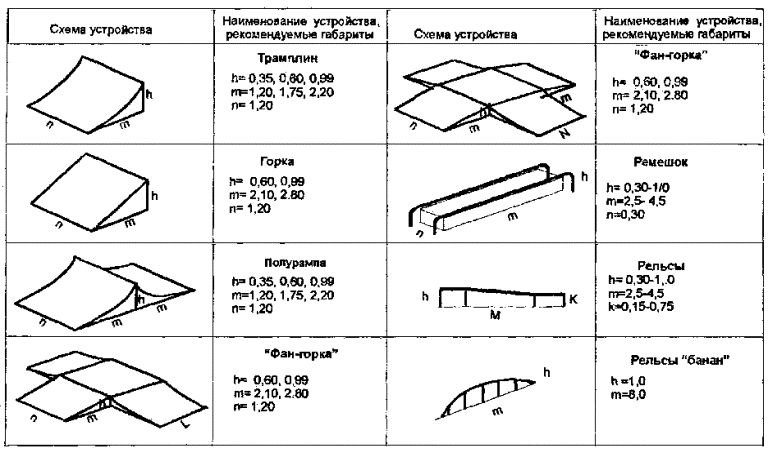 21. Схемы сооружений для роллерспорта и скэйтбординга. Рис.