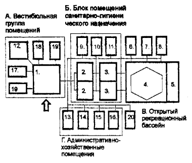 26. Функциональная схема открытого рекреационного бассейна Экспликация
