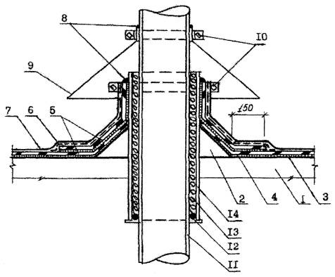 8 - герметизирующая мастика; 9 - зонт из оцинкованной стали; 10 - обжимное