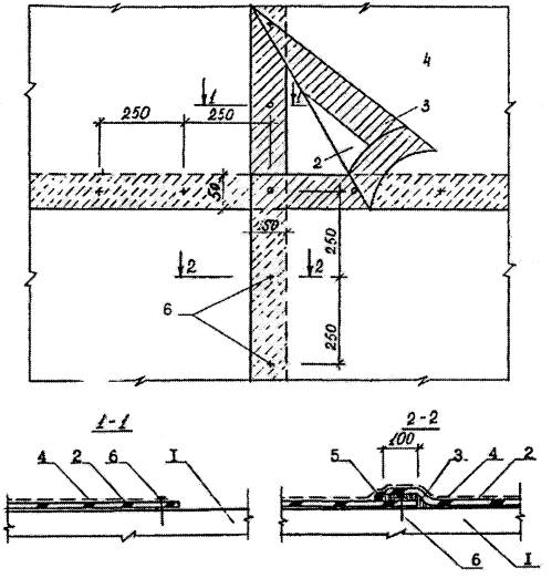 гидроизоляции; 4 - металлические листы; 5 - герметизирующая мастика; 6 -