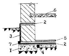 наружных стен подвала; 5 - пол подвала; 6 - перекрытие подвала; 7 - стык