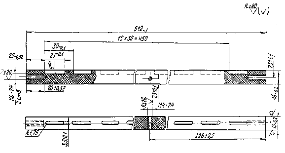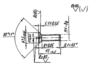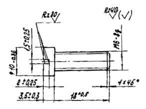 Рис. 15. Винт кассеты для установки контрольных образцов через задвижку. Материал - пруток БрКМц3-1т-кр-12 (ГОСТ 1628-78)
