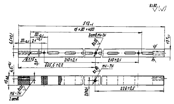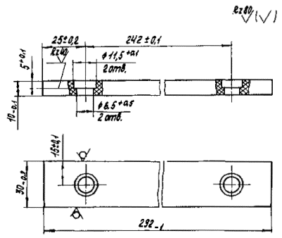 Чертеж винта приведен на рис. 8 Рис. 10. Планка для установки коррозионных образцов через задвижку. Материал - текстолит ПТ-30 (ГОСТ 5-78Е)