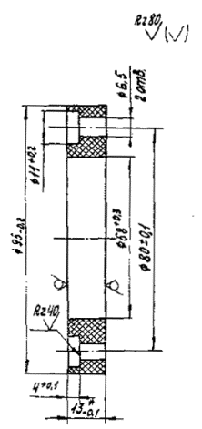 Рис. 5. Фланец кассеты для установки контрольных образцов через байпас. Материал - текстолит ПТ-13 (ГОСТ 5-78Е) *Размер