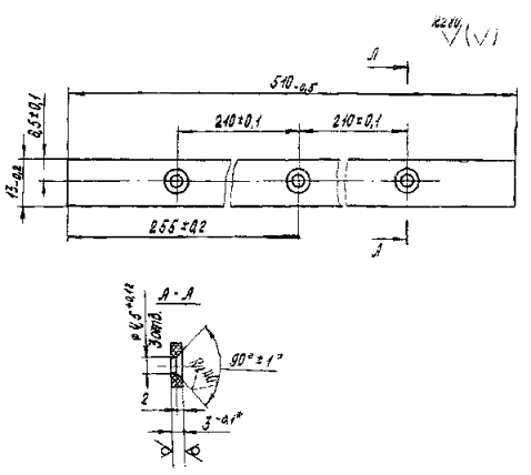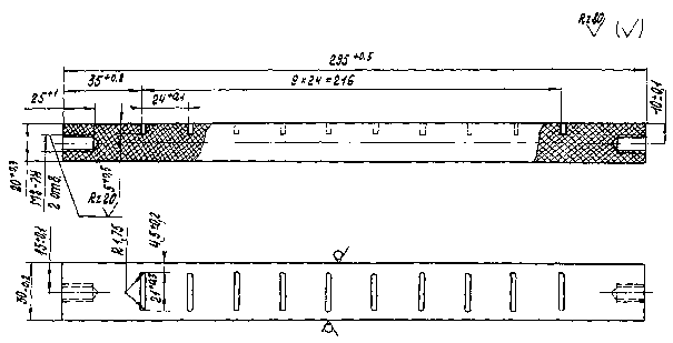квадратных скобках указано число деталей Рис. 3. Планка кассеты для установки контрольных образцов через байпас. Материал - текстолит ПТ-13 (ГОСТ 5-78Е) *Размер