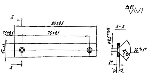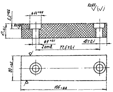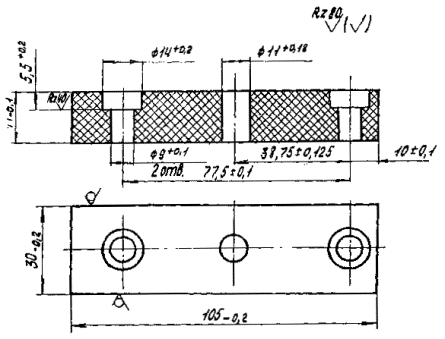 Рис. 14. Планка установочная кассеты для установки контрольных образцов через задвижку. Материал - текстолит ПТ-30 (ГОСТ 5-78Е)