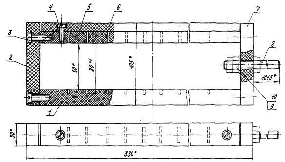 винт [2]; 5 - планка [1]; 6 - планка установочная [1]; 7 - планка [1]; 8 - шток
