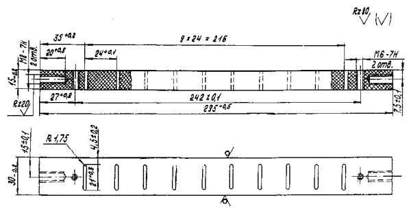 Рис. 13. Планка кассеты для установки контрольных образцов через задвижку. Материал - текстолит ПТ-30 (ГОСТ 5-78Е)