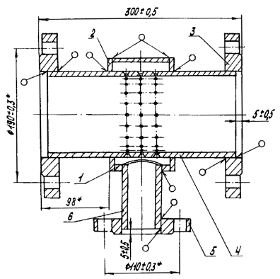 труба [1]; 5 - фланец [1]; 6 - патрубок [1] *Размеры