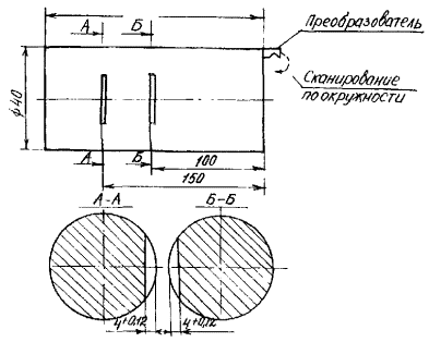 200 мм, изготовленный из стали 40ХН, на котором имеются два контрольных дефекта