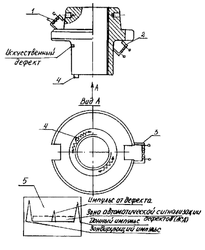 4 - ультразвуковой преобразователь; 5 - изображения на экране дефектоскопа Контрольные