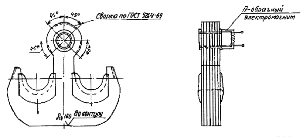 крюкоблоков и крюков производят с помощью накладных П-образных электромагнитов,