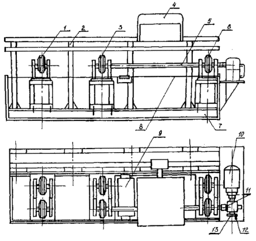 приводной; 4 - затемнение; 5 - вал; 7 - рама; 8 - трос; 9 - поддон; 10 - электродвигатель; 11 - муфты; 12