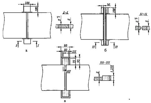 менее 100 мм и толщиной не менее 20 мм; - зазоры в стыках между секциями медной подкладки не должны