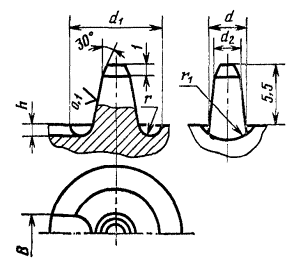 Предельные отклонения размеров: отверстий - Н7, валов - h6, остальных - js12. Основные размеры рабочей части
