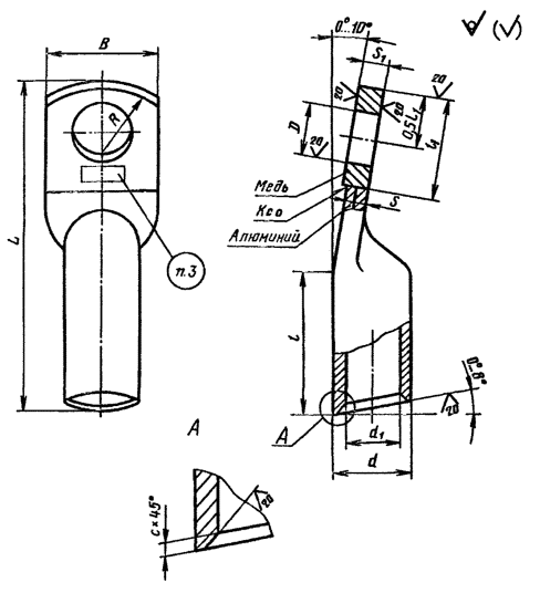 ОКП, предельные отклонения и расчетная масса медно-алюминиевых наконечников и