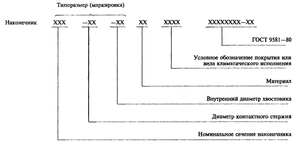 редакция, Изм. № 2). 6. Основные размеры спрессованных соединений указаны в приложении 1. 7. Остальные требования - по ГОСТ 23981. 8. Структура условного обозначения, указания по маркировке наконечников