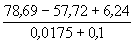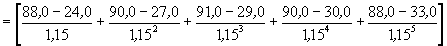 = 64,0/1,14 + 63,0/1,30 + 62,0/1,48 + 60,0/1,69 + 55,0/1,93 - 0,13 - 171,0 - 60 = 56,1 + 48,5 + 41,9 +