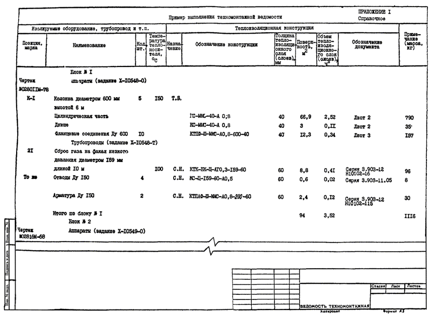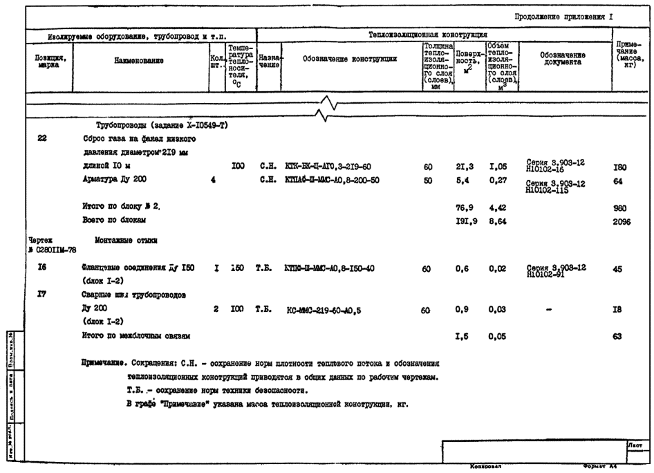 масса теплоизоляционной конструкции по каждому блоку. 4.1.3. При разработке рабочих чертежей должны быть обеспечены: унификация и типизация проектных решений; применение в максимальных объемах типовых конструкций изоляции,