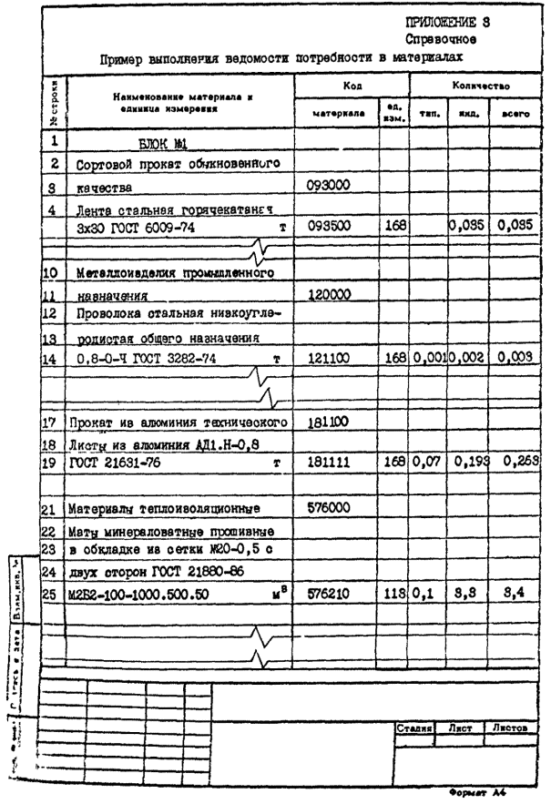 типовых конструкций с указанием номера серии и листа). Запись сведений в пределах каждого блока должна производиться