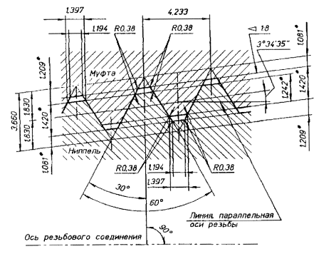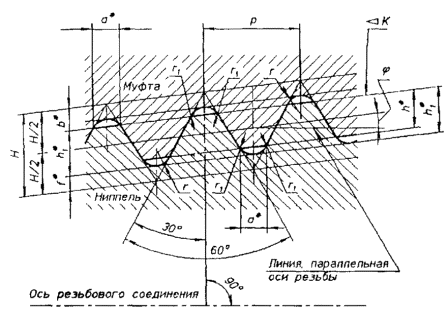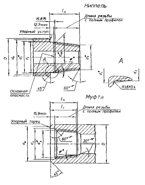 Профиль резьбы ниппеля и муфты и размеры его элементов должны соответствовать