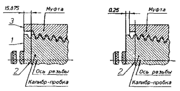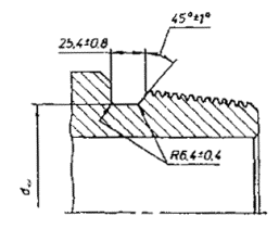 Допуск перпендикулярности упорного уступа ниппеля и упорного торца муфты к оси резьбы не должен быть