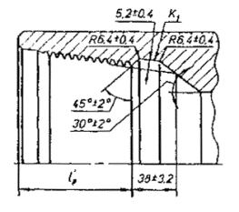 стандарте применяют следующие обозначения: Р - шаг резьбы; К - конусность резьбы; К1 - конусность гладкой