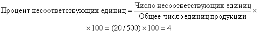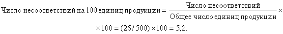 Таким образом, партия имеет 4% несоответствующих единиц продукции. Число несоответствий на сто единиц продукции в партии выражается следующей формулой