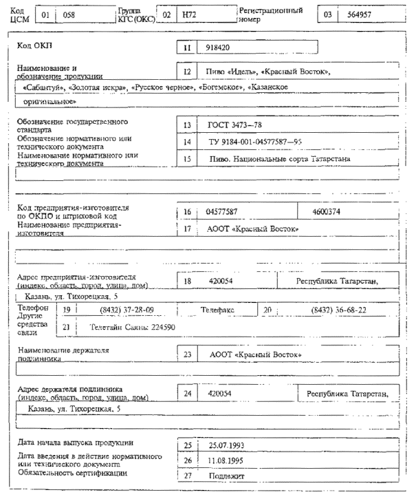 также обязательность сертификации продукции; - заполняют поля, отведенные