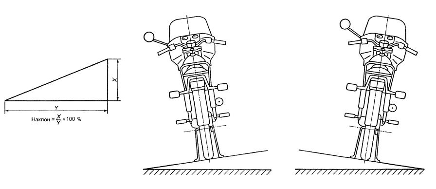 чего транспортное средство опирают на боковую подставку. 5.3.1.2. Транспортное средство перемещают таким образом, чтобы угол,