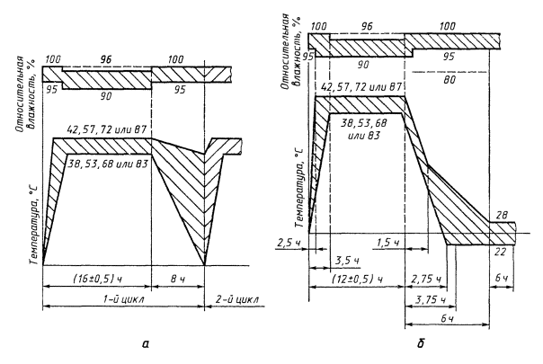 Конкретный метод испытания устанавливают в стандартах и ТУ на изделия и ПИ. 5.3. Метод 208-1. Циклический режим 5.3.1. Испытание проводят в камере влажности, руководствуясь требованиями,