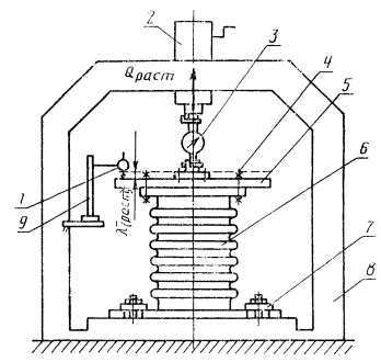 подтверждению вероятности безотказной работы при сжатии-растяжении 1 - компенсатор сильфонный; 2 - заглушка нижняя; 3 - заглушка верхняя; 4 - фланец промежуточный; 5, 6