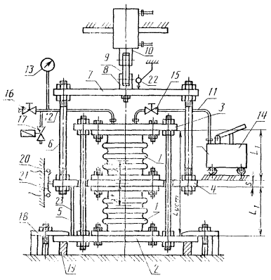 контрольных испытаний сильфонных компенсаторов и металлических уплотнений,