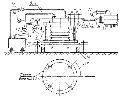 - серьга; 5 - талреп; 7 - переходник; 8 - привод; 9, 10 - шланг гибкий; 11 - манометр; 12 -