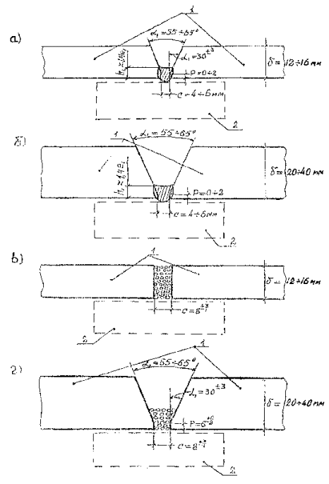 монтажных швов, способы сварки, участки сварных швов с полным проплавлением