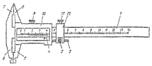 губки верхние; 9 и 11 - стопорные винты; 10 - рамка; 12 - хомутик Рис. Н.2. Штангенциркуль ШЦ-III с