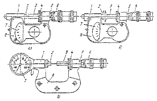 6 - барабан; 7 - отсчетное устройство; 8 - теплоизоляционная накладка Микрометры с ценой деления 0,01 мм (ГОСТ 6507) изготовляет следующих